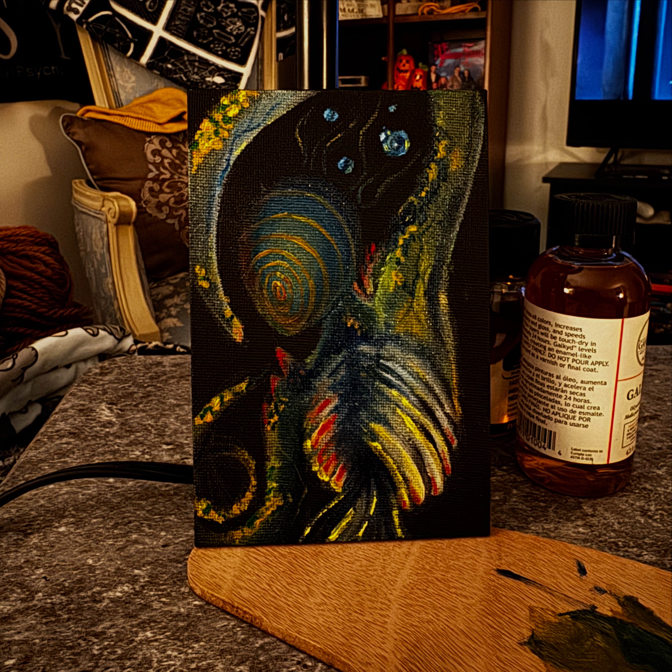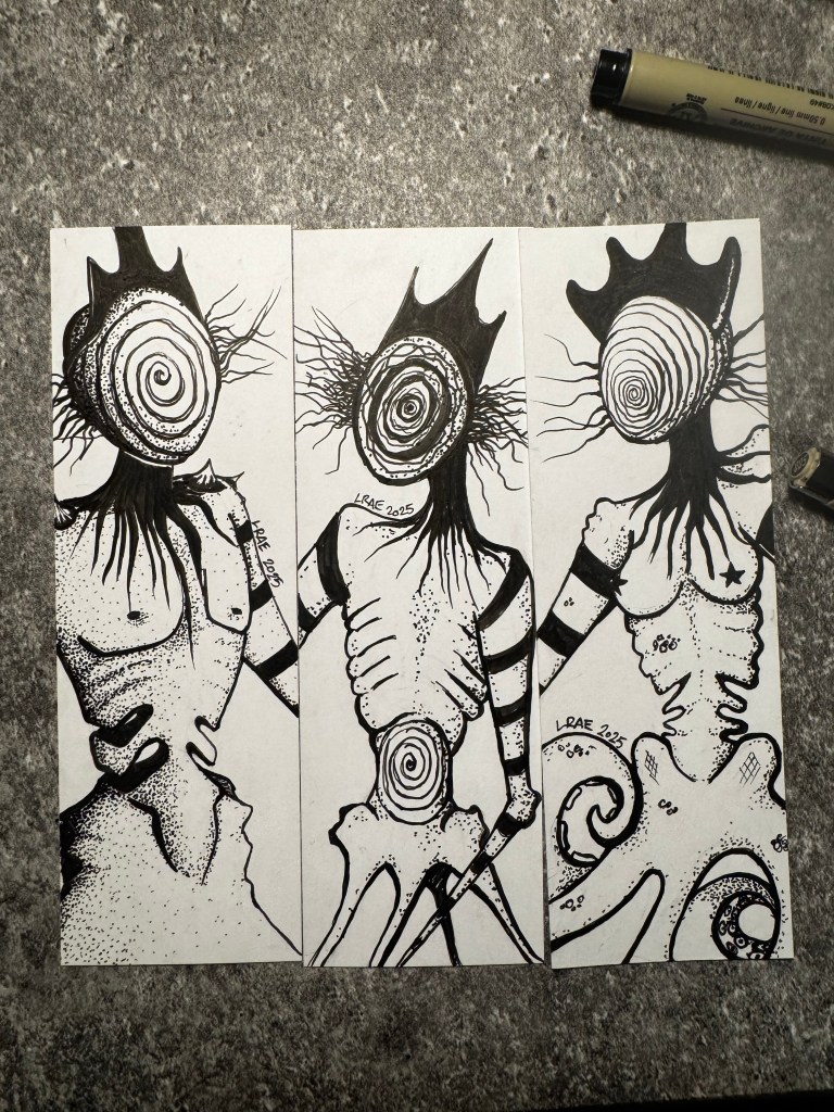 My work explores the fragile boundary between beauty and monstrosity. It’s a realm where decay becomes divine and the unseen takes shape. Each piece is an excavation of inner worlds: surreal, psychological, and deeply symbolic. I draw inspiration from myth, morality, and the subconscious – transforming them into forms that feel both alien and familiar. Spirals, eyes, and organic textures often emerge as recurring symbols of transformation and awareness, revealing how chaos and order coexist within the same breath.